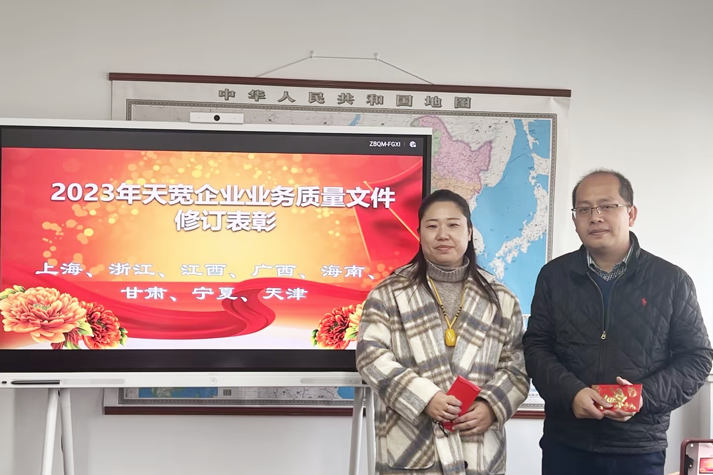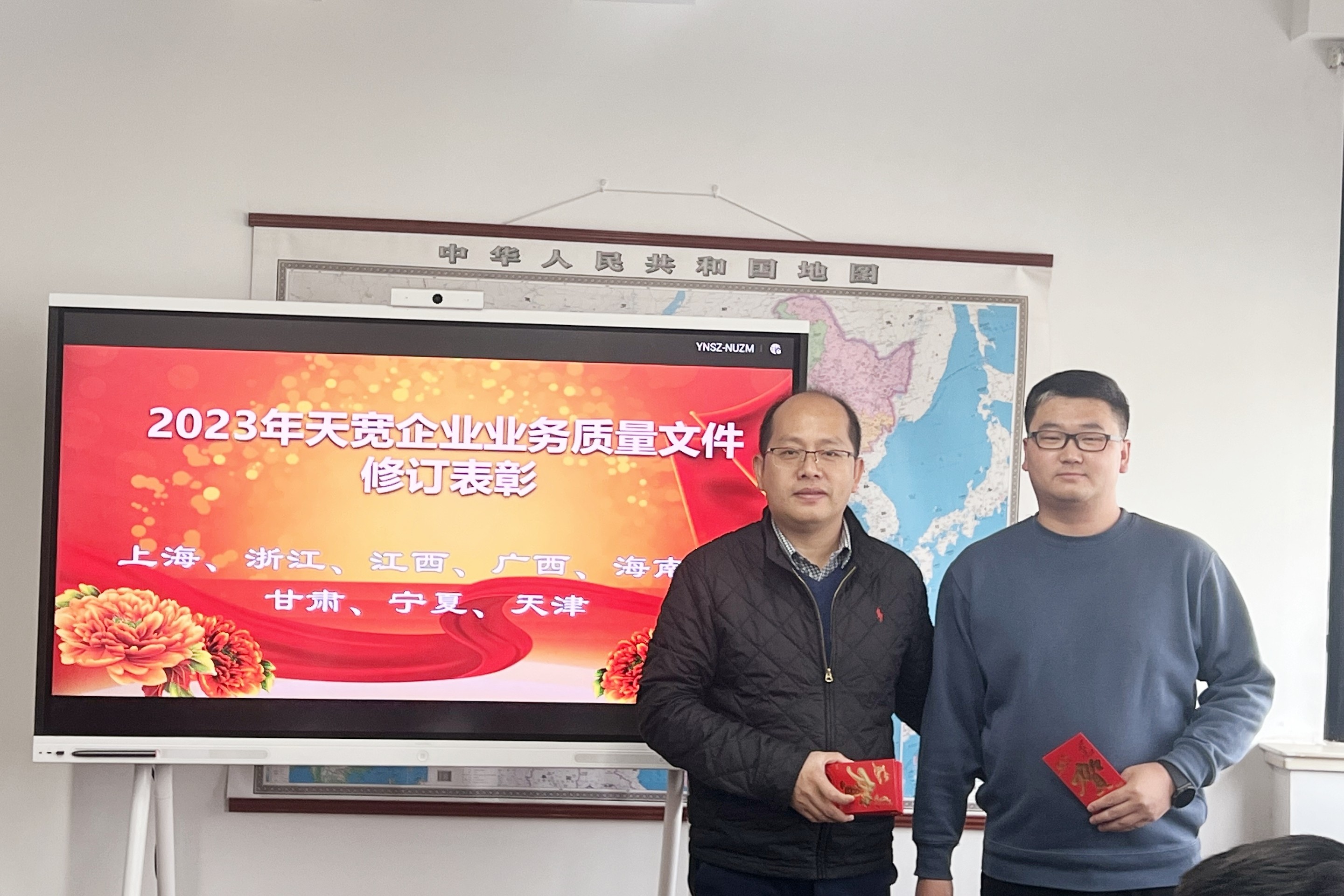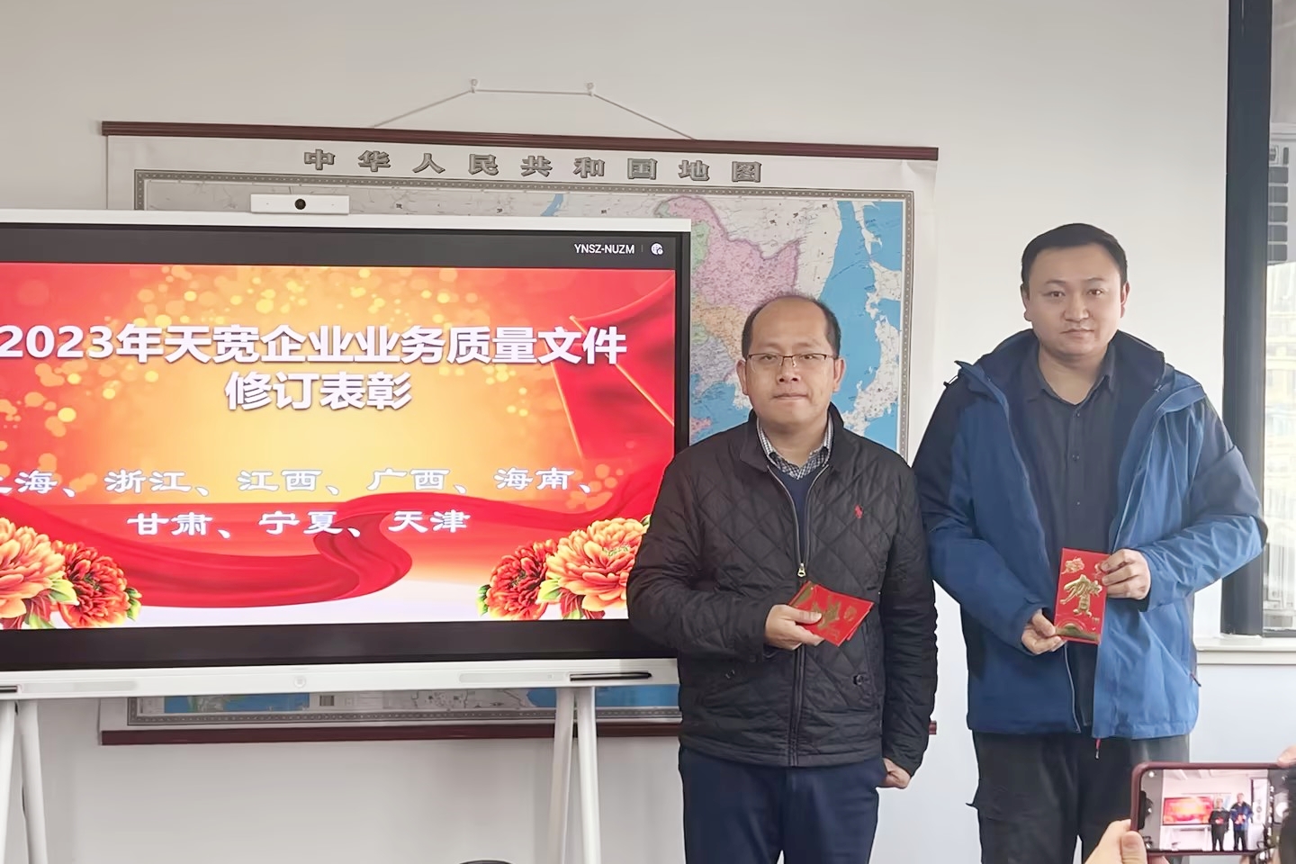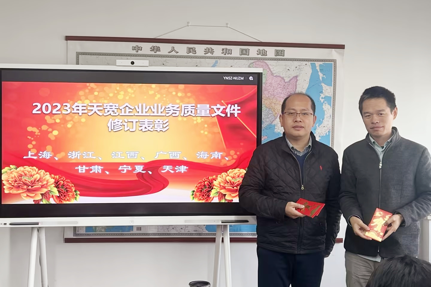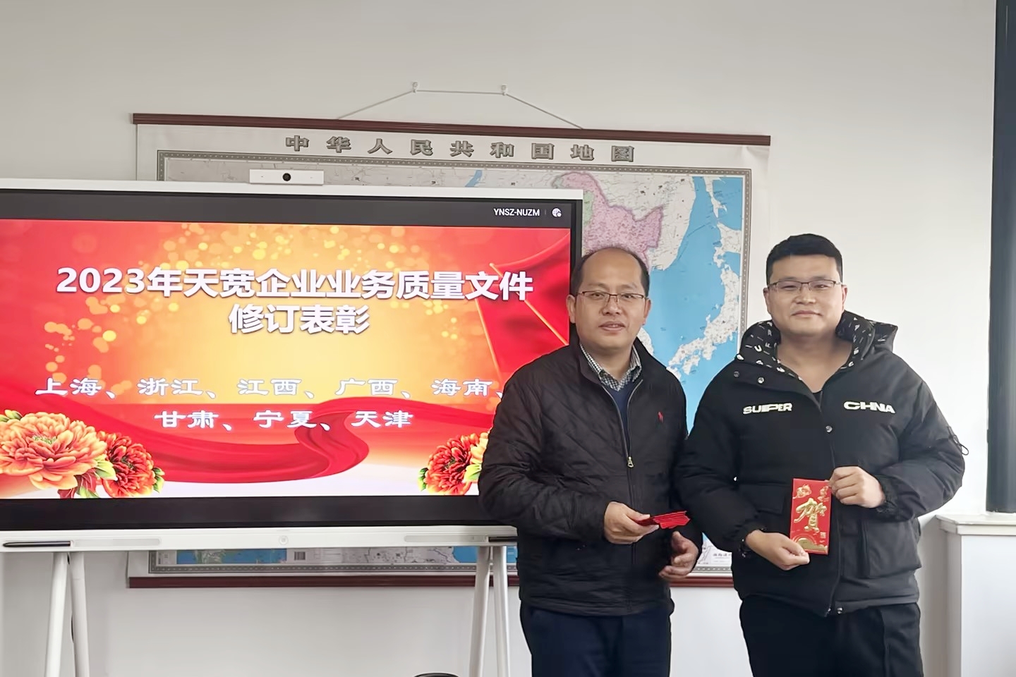 為更好提升服務質量,規(guī)范公司業(yè)務服務流程,2023年10月下旬,公司成立《質量文件》修訂項目組,在服務中心原有質量流程體系上,針對目前業(yè)務情況,梳理八大業(yè)務場景及工作流程,并于11月初全面完成《企業(yè)業(yè)務服務質量流程說明書》第一版修訂工作。會上,服務中心副總經理華紅鋒對為本次質量文件修訂做出突出貢獻的項目組成員進行了激勵表彰。