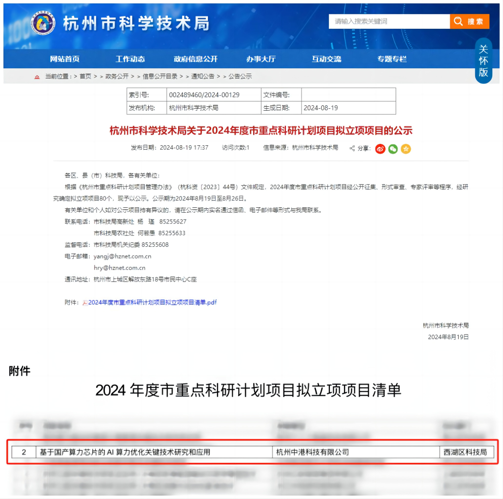 近日,經(jīng)杭州市科技局公示,由天寬旗下公司中港科技牽頭與杭州電子科技大學、杭州人工智能計算中心、杭州市第一人民醫(yī)院聯(lián)合申報的“基于國產(chǎn)算力芯片的 AI 算力優(yōu)化關(guān)鍵技術(shù)研究和應(yīng)用”項目成功獲批2024年度市重點科研計劃項目立項。