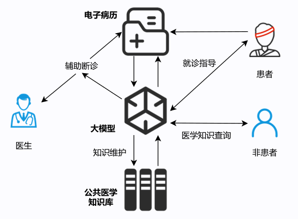 該方案基于AI模型分布式并行計(jì)算框架,通過對(duì)醫(yī)學(xué)知識(shí)與患者病歷的收集與清洗,構(gòu)建公共醫(yī)學(xué)知識(shí)庫以及在線電子病歷檔案庫,結(jié)合本地部署的大語言模型在患者端提供快速、無門檻的醫(yī)學(xué)知識(shí)咨詢以及就診指導(dǎo)服務(wù);在醫(yī)學(xué)工作者端,利用RAG、ICL技術(shù)以及知識(shí)補(bǔ)全、知識(shí)推理技術(shù),結(jié)合華為MindSpore和Ascend AI芯片的大模型與知識(shí)圖譜的深度緊耦合實(shí)現(xiàn)輔助斷診,基于患者電子病歷進(jìn)行關(guān)鍵特征分析,輔助進(jìn)行精準(zhǔn)快速的斷診和處理建議,也可為病患或個(gè)人提供個(gè)性化的,豐富的醫(yī)學(xué)知識(shí)獲取渠道,給出就診建議、用藥建議、生活中注意事項(xiàng)等建議參考,助力構(gòu)建中國式現(xiàn)代化醫(yī)療服務(wù)新范式。